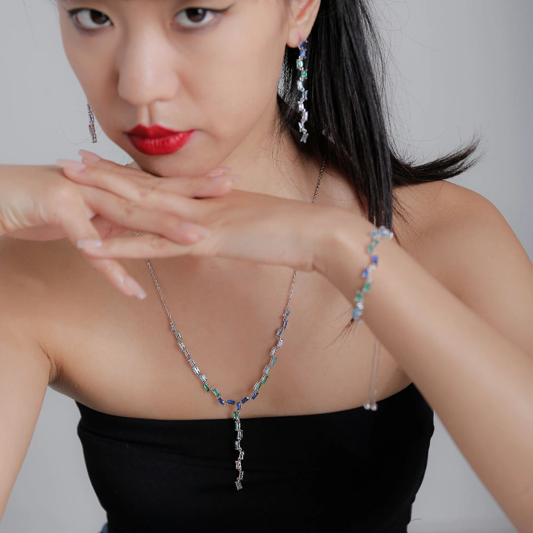 En forma de corazón cuadrado esmeralda oval plata tenis pulsera