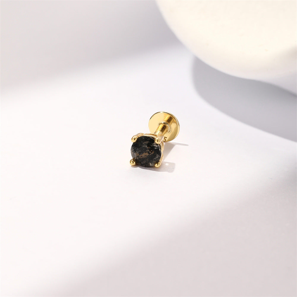 Multi Size Black Rutilated Quartz Flat Back Earrings S925 Gold Plated Sterling Silver 4 Prong Setting Cartilage Lobe Studs